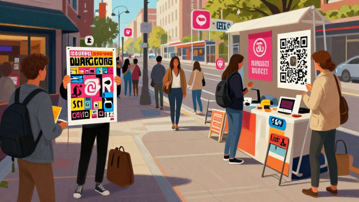 Pilih lokasi yang ramai untuk menjalankan kampanye Anda, seperti pusat perbelanjaan atau area publik. Gunakan elemen visual yang menarik agar orang berhenti dan memperhatikan.